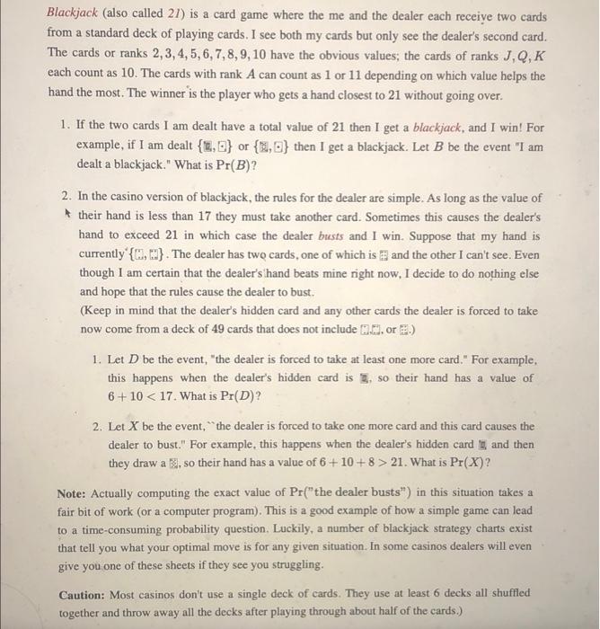 Solved Blackjack Also Called 21 Is A Card Game Where The Chegg Com